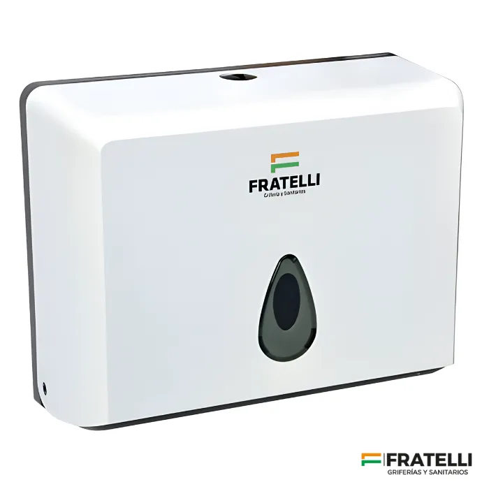 Dispensador de papel toalla interfoliado, práctico y resistente. Diseñado para ofrecer extracción hoja por hoja, ayudando a reducir el consumo y mejorar la higiene. Ideal para baños, cocinas y áreas de alto tránsito, combina fácil recarga con un diseño funcional y duradero.